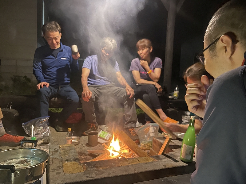 夜は 丹波山村の奥秋キャンプ場泊。いつも利用していた2件のキャンプ場は貸し切りのため満員。3件目の電話でバンガローを予約した。きれいで安く快適であった。今後お世話になりたいと思う。で天気に恵まれた週末なので騒がしいのかと思ったが、他にはボーイスカウトキャンプの下見のグループだけ。当番が腕を振るってくれた 豚しゃぶ、棒棒鶏サラダなど美味しくいただき、日付が変わる直前までのんでいた人もいたようだ。