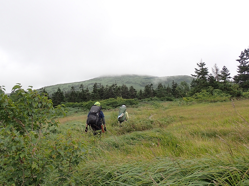 長いゴーロ歩きのあと 藪漕ぎして湿原に飛び出す