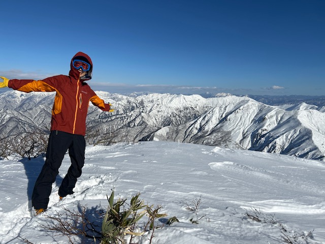 松手山では快晴無風だが少し寒くなってきたのでカッパの上は着るが下はザックに仕舞ったままだった。浅間、富士、苗場、谷川、越後駒と視界はすこぶる良くI崎さんの自宅も見えるとのこと。平標山近くには雪庇ができつつあった。山頂は10人ほどの登山者で賑わっていた。気の早い山スキーヤーのシュプールが山の家方面に延びていたがその後はどう下るのだろう?お疲れ様です。あそこがヤカイ沢で‥など地図と実際の地形を見ながらのI崎さんのなべさんへのスキールートの説明が解りやすくてあややも参考になる。